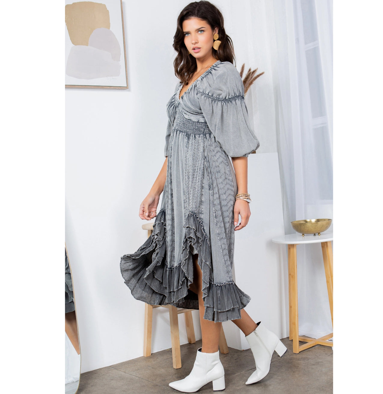 - Effortless elegance with vintage-inspired asymmetrical and frill detailing.